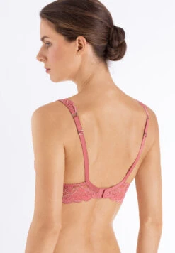 Modern, seductive lingerie. Structured jacquard fabric combined with graphic lace. Play of opaque and sheer materials. Lace edging on bras and briefs create a smooth surface underneath clothes.