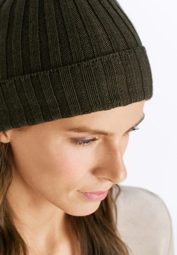 Wonderfully soft knitted cap made of non-itchy merino wool. In beautiful Strong Olive. An accessory for the coming winter.