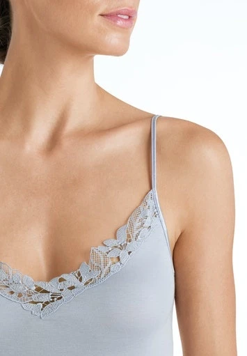 Elegant daywear. Tops are seamless and hemless; made of mercerized cotton. Decorative floral embroidery from Austria.