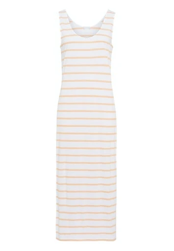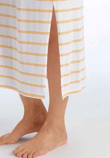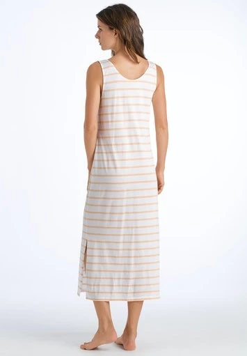 A must-have for every woman. This cool and casual long dress made of a very soft mix of modal and cotton, is perfect for sleeping, lounging, or the beach. In classic stripe print.