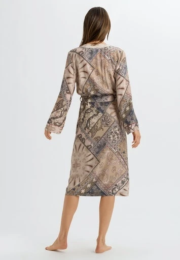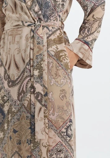 Contemporary styles for sleeping, lounging, or as ready-to-wear. Fashionable look in silky cupro-viscose fabric with modern paisley print.