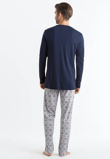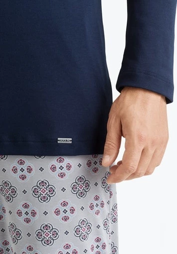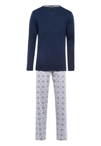 Versatile selection of modern pajama sets made from soft interlock. Blue nuances convey a light, summery feel.