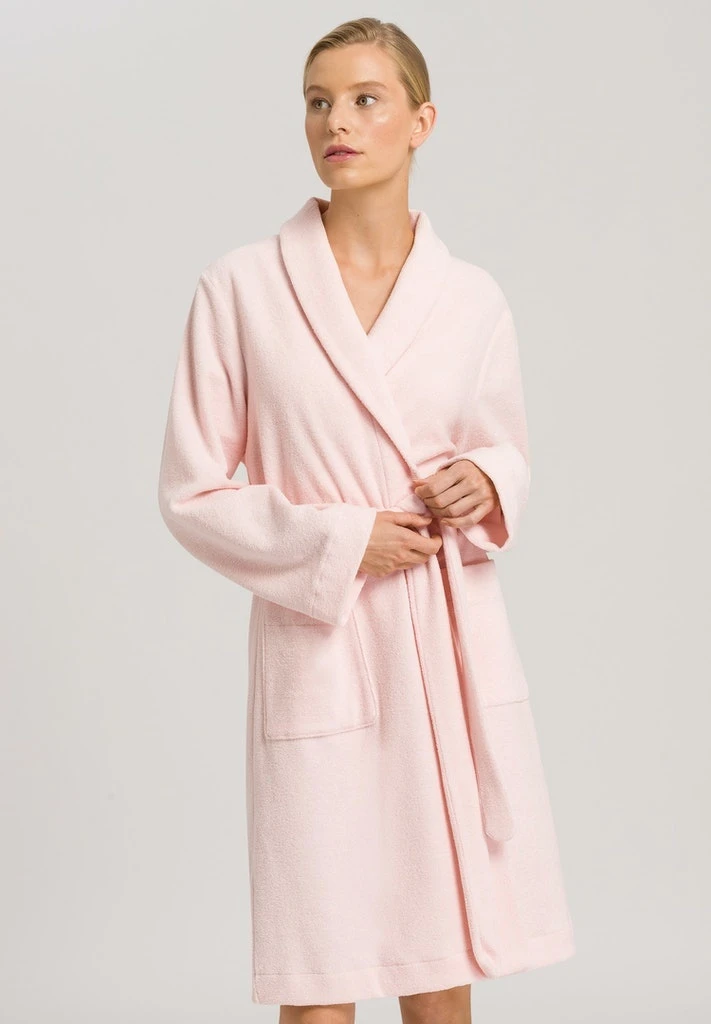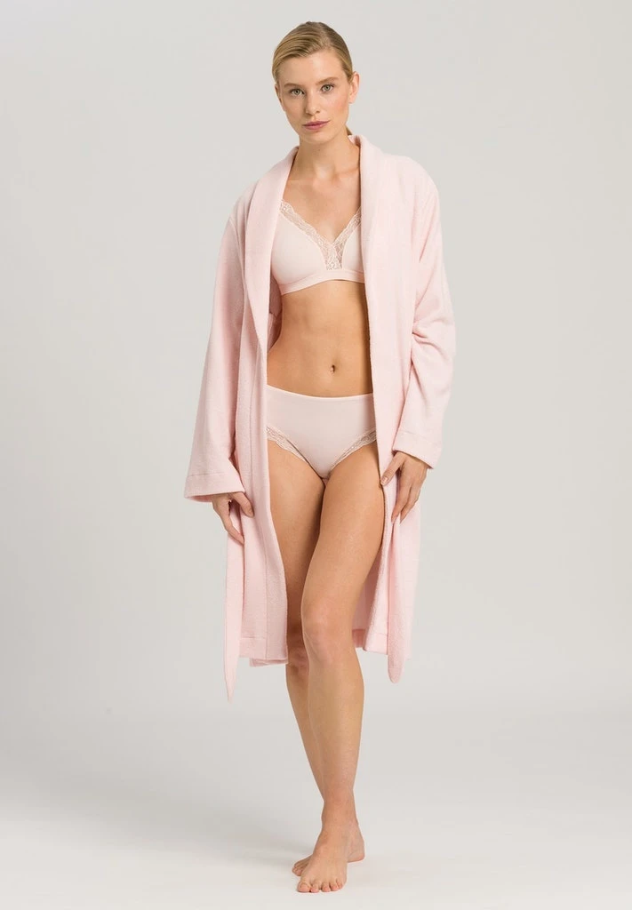 Robe Selection by Hanro. A delightful choice of three different robes. This bathrobe has that overwhelming feeling of snugness. Lovely soft fleece in beautiful modern design.