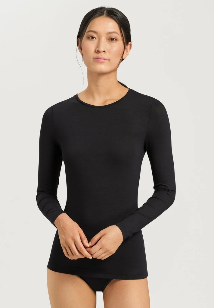 Modern designs in perfect close fit. Follows every movement your body makes. Feel free and happy with the soft body-hugging micro modal. With crew neck and long sleeves.